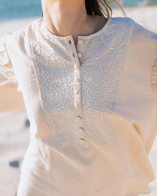 All of our summer dresses are designed in Perth, Australia and hand-embroidered in India by talented female artisans. These garments carry the legacy of Chikankari, a traditional Indian embroidery technique, blending heritage with modern fashion.